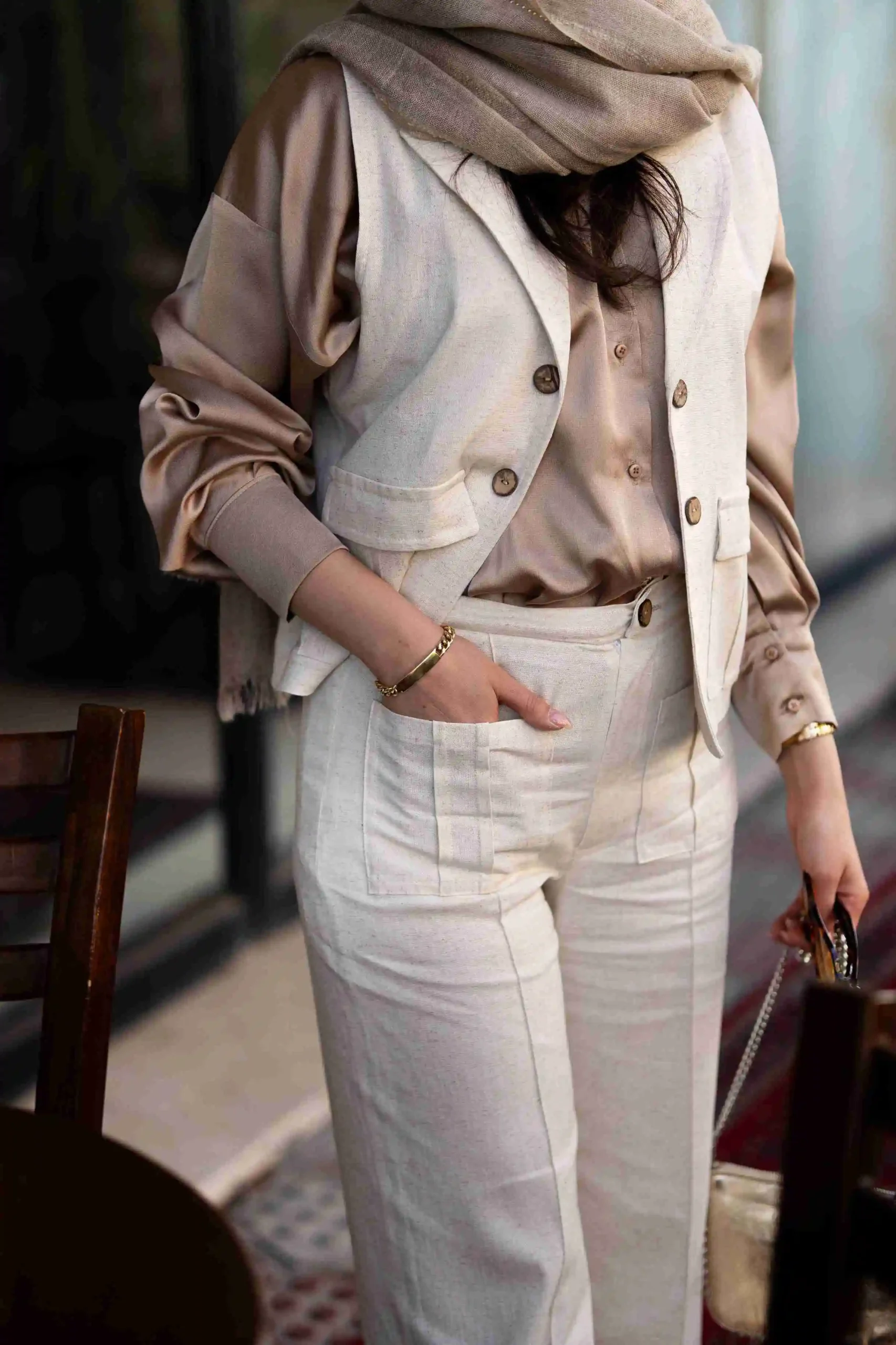 رنگبندی : تک رنگ مطابق تصویر جنس : لینن سایز : سایز۱مناسب(۳۸-۴۰) – سایز۲مناسب(۴۲-۴۴) قد : ۵۵ نحوه شستشو : حتما خشکشویی شود